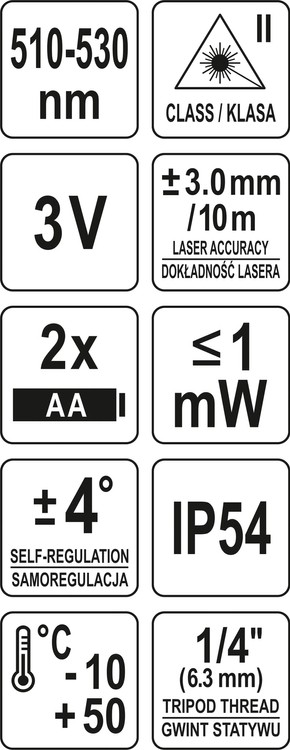 "Accuracy: H / V line ± 3mm / 10m.