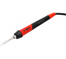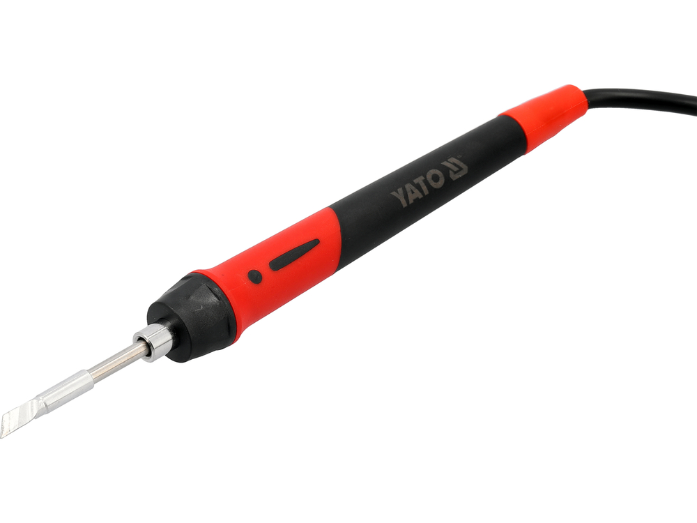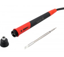 Soldering station for 245 tips designed for mobile work. The device is powered by batteries from the YATO 18 V system, allowing it to operate in locations where access to mains power is limited. The color display enables convenient monitoring of parameters, while temperature adjustment and calibration allow settings to be tailored to the type of components being soldered.