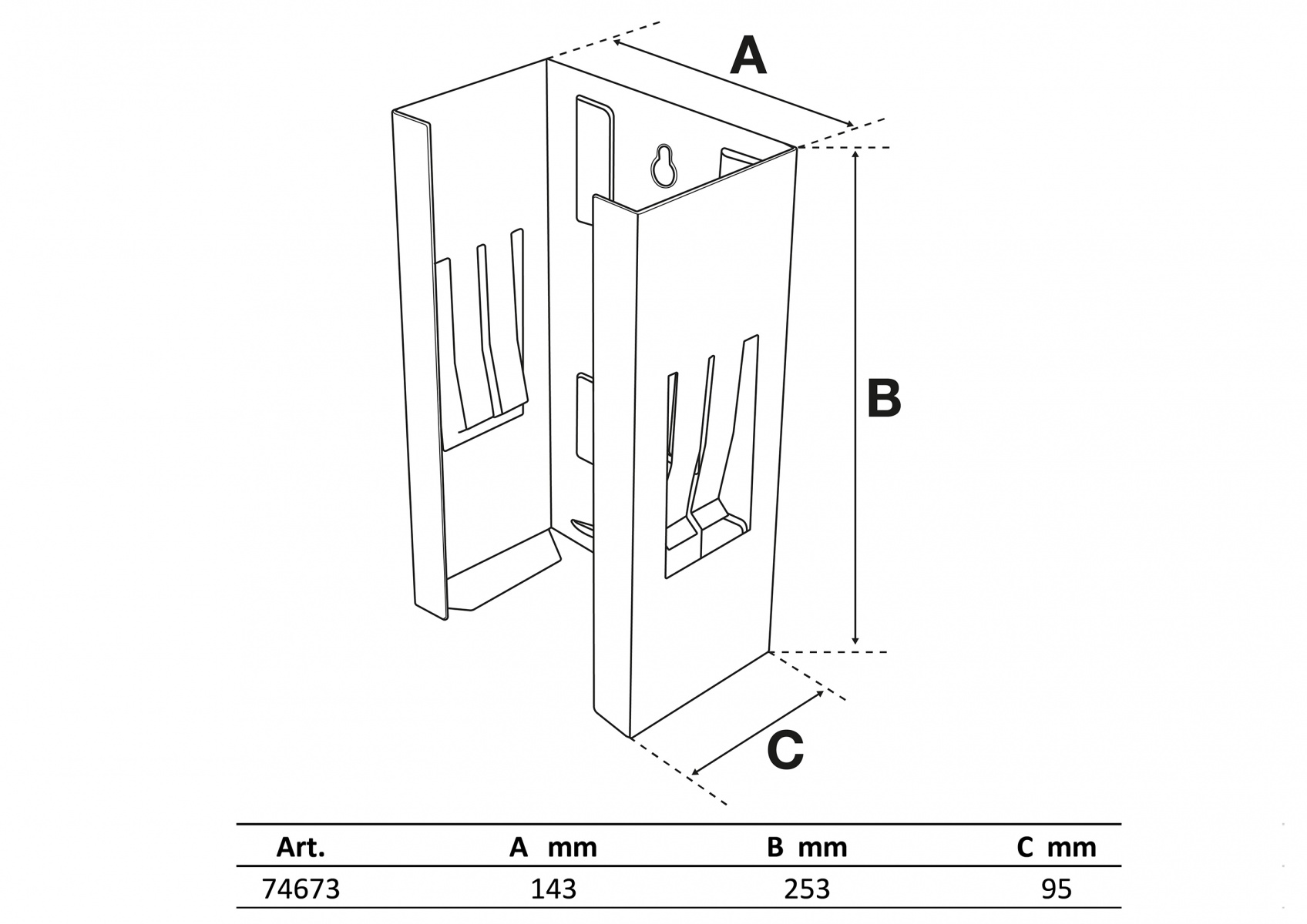 dimensions of the dispenser recess area 253 x 143 x 95 mm