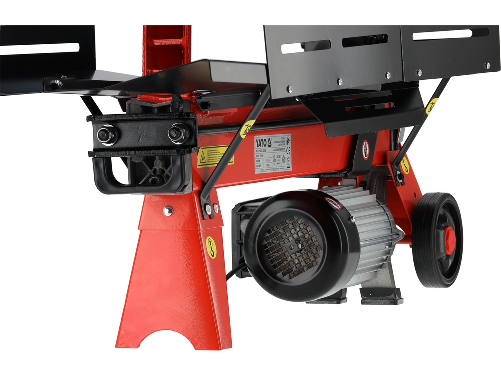 Efficient hydraulic log splitter for preparing firewood equipped with a system generating pressure up to 7 tons. The working pressure of 24.2 MPa allows for effectively splitting harder and thicker logs up to 520 mm in length and 250 mm in diameter. The 230 V electric drive enables use in a garage, workshop, or backyard utility area.