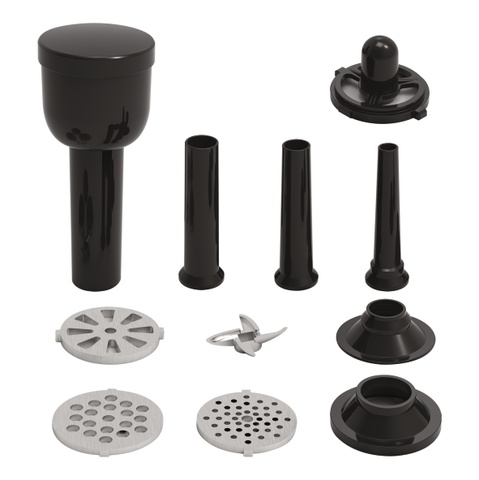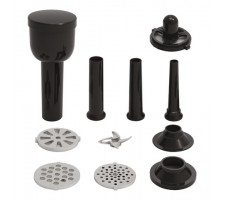 meat grinder, tray, edge, grinding disc x3 (diameter 4 mm, 7 mm, shredder), sausage filling adapter x3 (diameter 14 mm, 20 mm, 22 mm), kebbe attachment x3,
