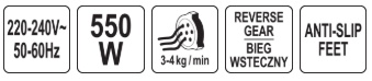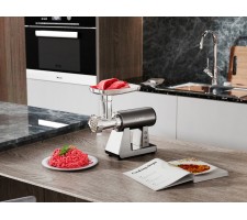 The grinder is equipped with a reverse function, which facilitates cleaning and unblocking the meat, as well as a safety switch protecting the user from accidental start-up. Non-slip feet ensure stability during operation, and the compact design weighing 3 kg makes the device convenient to carry and store.