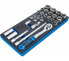 Įrankių dėklas 1/3: Galvučių rinkinys | Coliniai dydžiai | 12,5 mm (1/2") | 27 vnt. (74607)