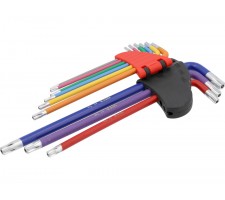 L tipo raktų rinkinys | spalvoti | labai ilgi | T-Star su skylutėm (Torx) T10 - T50 | 9 vnt. (YT-05636)