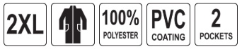 PVC-coated polyester is a waterproof and windproof material. Excess heat escapes from under the material through ventilation slots on the back and openings under the arms.