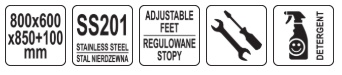 Nerūdijančio plieno stalas su erdvia kriaukle / balėja 80 x 60 cm (YG-30921)
