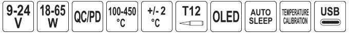 Nešiojamas USB-C T12 skaitmeninis lituoklis su OLED (iki 96W) (YT-82488)