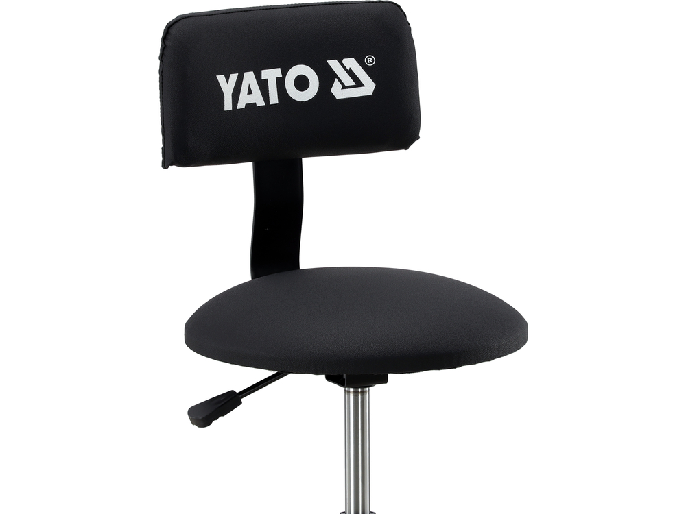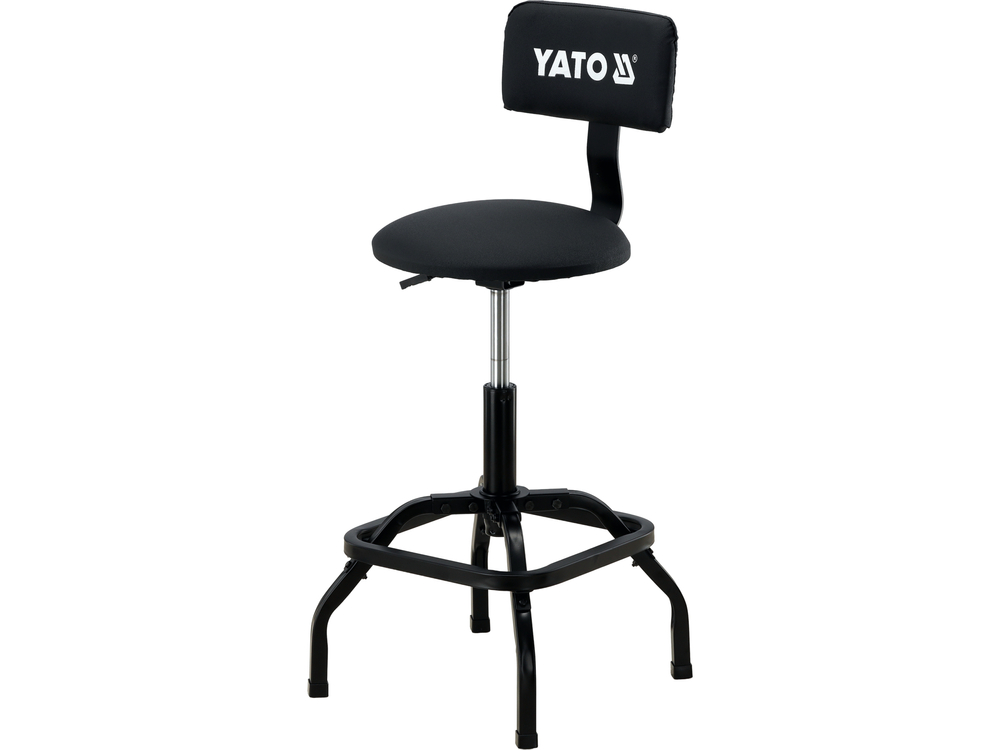 Rotating workshop chair with height adjustment and backrest is a practical addition to the workspace in a garage, service center, or workshop. The 360° swivel seat increases freedom of movement, making it easier to access tools and work items without the need to stand up or reposition the workstation. Height adjustment allows for precise positioning according to the type of task being performed.