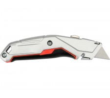 Trapesoidal blade knife designed for intensive assembly and warehouse work, where a strong and stable blade is required. The aluminum body supplemented with ABS and TPR elements increases resistance to damage, while improving grip when cutting harder materials. The SK5 tool steel blade ensures high durability and consistent cutting quality.
