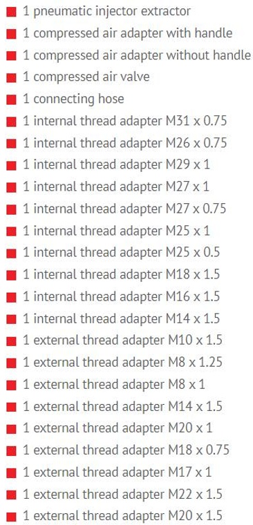 including a wide range of adapters, suitable for the most commonly used diesel injectors