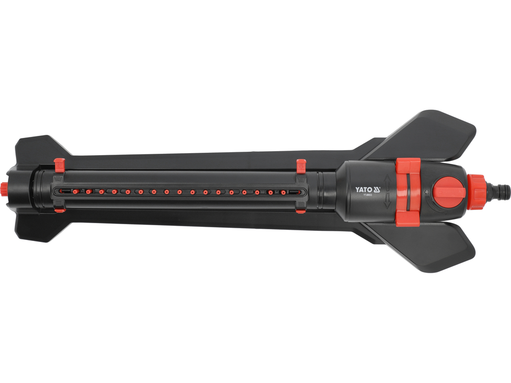 An oscillating sprinkler with adjustable range and watering angle, designed for watering various areas - from large gardens to narrow strips of lawn. Equipped with 17 durable nozzles that can be flexibly adjusted to suit the needs of the lawn, garden layout, and terrain.