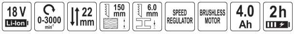 It works perfectly in a wide range of applications - from workshop and service work, to assembly and construction. Thanks to adjustable rotational speed and a 22 mm stroke length, the saw allows for precise cutting of both wood (up to 150 mm) and metal (up to 6 mm). It will come in handy for dismantling wooden structures, trimming beams, cutting steel or aluminum pipes, as well as during installation, renovation, or field work where access to mains power is limited.