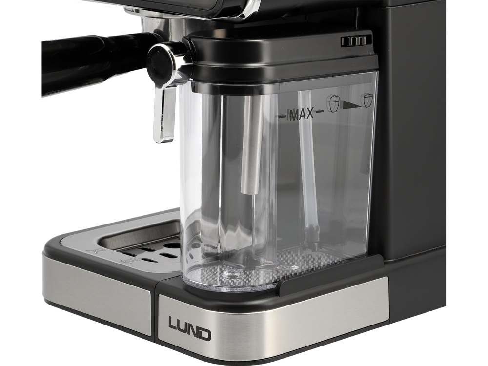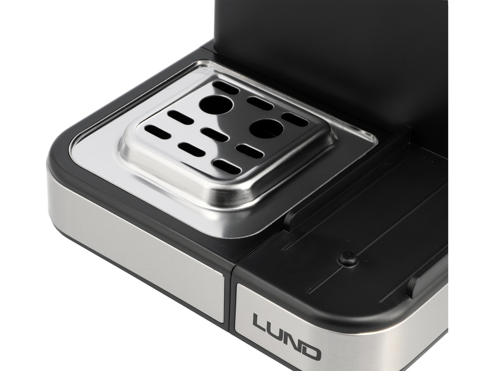 The LUND 68502 9 in 1 pressure coffee maker is a versatile device that allows you to enjoy coffee tailored to your mood and time of day. It enables you to prepare not only classic espresso or cappuccino, but also latte, flat white, americano, refreshing cold brew, and drinks with automatically frothed milk. Two types of carafes – for ground coffee and a unique one on the market for Nespresso®, Starbucks®, and UCC® capsules – combine freedom of choice and flexibility in everyday use.