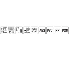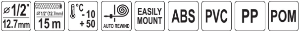 garden hose 1/2" (12.7 mm), 15 m, 1/2" (12.7 mm) guide hose, 2 m, automatic retractor, fixing anchors x4, 1/2" (12.7 mm) quick-release coupling, 1/2" (12.7 mm) quick-release coupling stop,