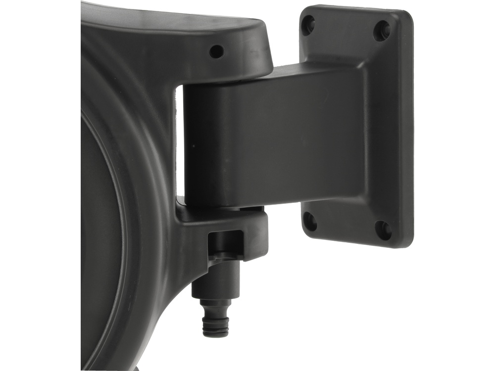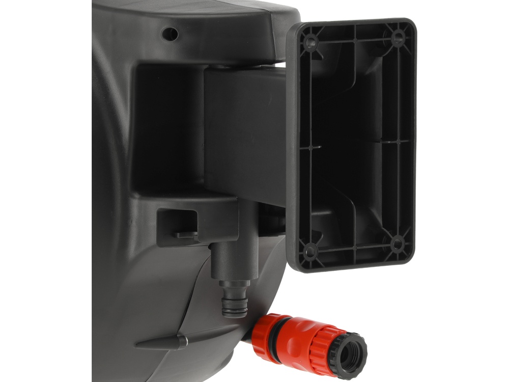Garden hose 15 m on an automatic reel mounted to the wall. It makes it easier and faster to retract the hose after watering, store it without kinks, and maintain order among garden tools. It works well for daily use in the garden or on the plot for watering plants and cleaning tasks, such as washing a car, bike, especially when it is frequently used.