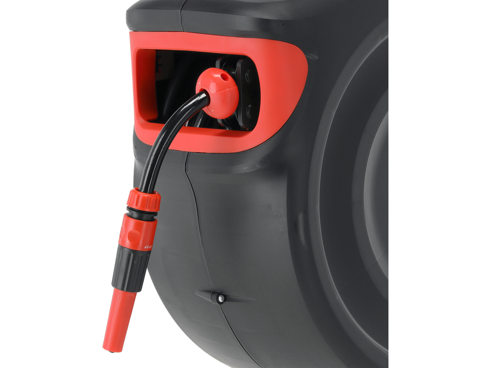 The automatic winding system makes it easier and faster to store the hose after watering, keeping it free of kinks and tangles, and maintaining order among garden tools. Wall mounting and hiding the hose entirely in the drum leaves more space to utilize on the garage or front yard floor.
