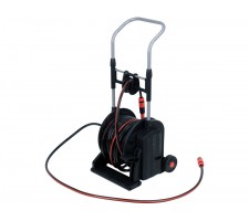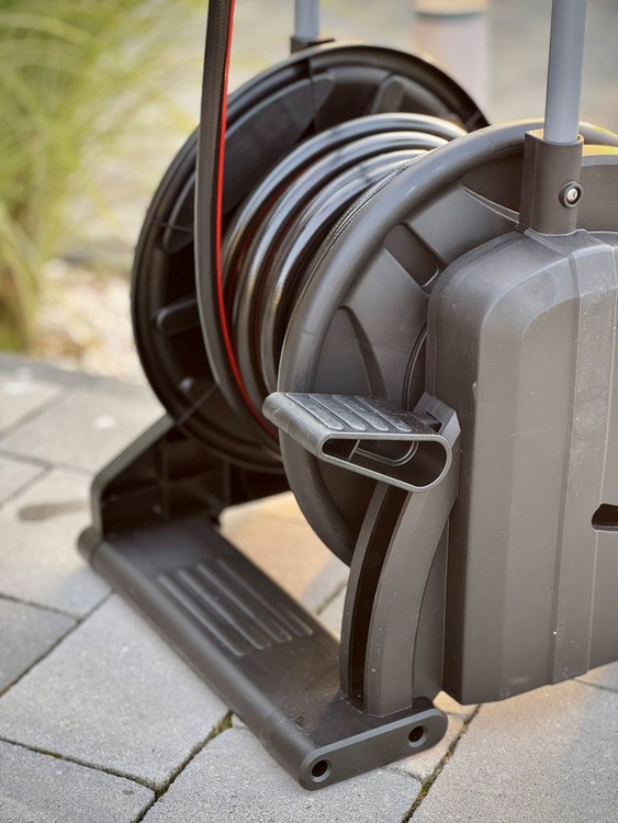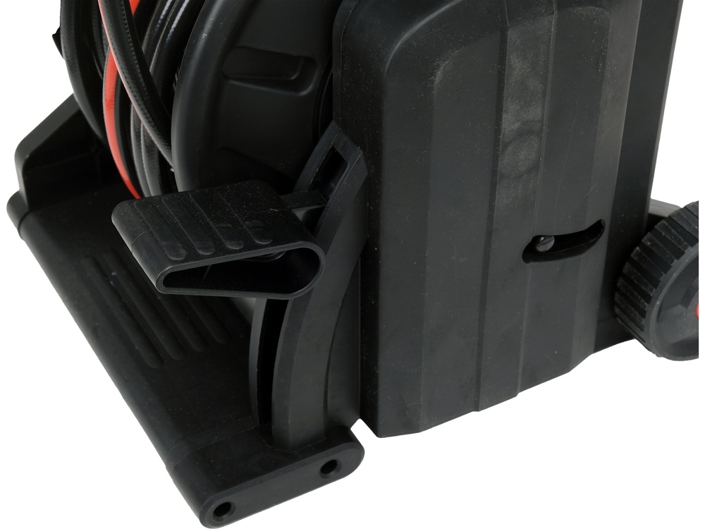 A wide support maintains the stability of the cart even when pulling out the hose. The foot pedal made of durable material efficiently winds up the hose after work is done, without tangling or bending.