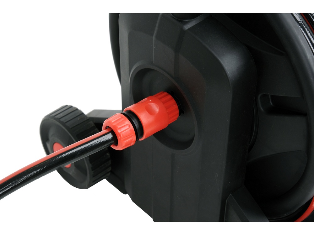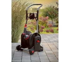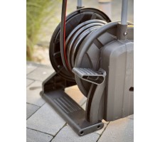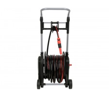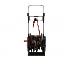 Functional, easy to use garden set that brings order and comfort to work around the house. A 25-meter hose, placed on a sturdy cart with large wheels, provides mobility and saves space when storing the hose.