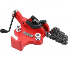 Chain pipe vise designed for professional workshops, installation plants, and industrial facilities. It is used for stable mounting of pipes of various diameters, facilitating precise cutting, threading, facing, or bending. Thanks to the flexible chain, the vise perfectly adapts to round and irregular elements, eliminating the risk of their displacement during work.