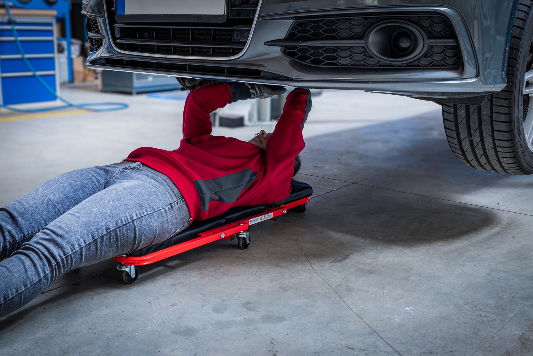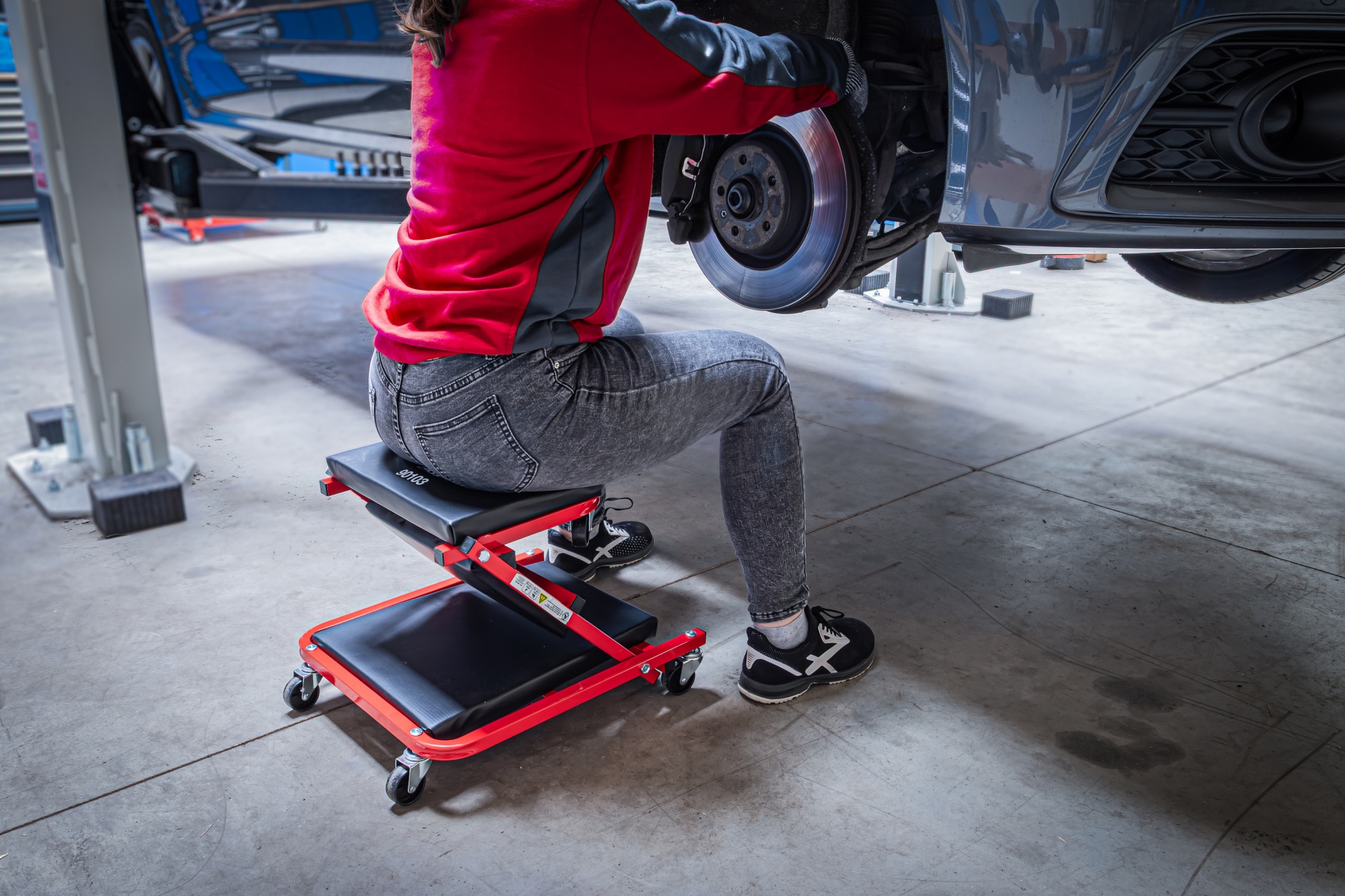 flexible use, due to 6 360° swiveling plastic casters (oil resistant and low noise)
