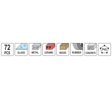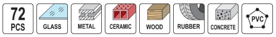 glass, metal, ceramics, wood, rubber, concrete, PVC