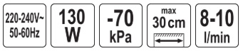 power: 130 W, 220-240 V, 50/60 Hz