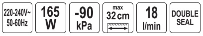 generated vacuum: -0.7 - 0.9 bar (-70 to -90 kpa)
