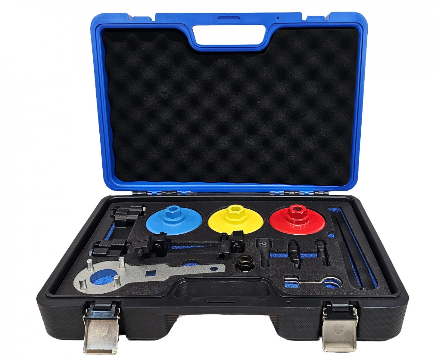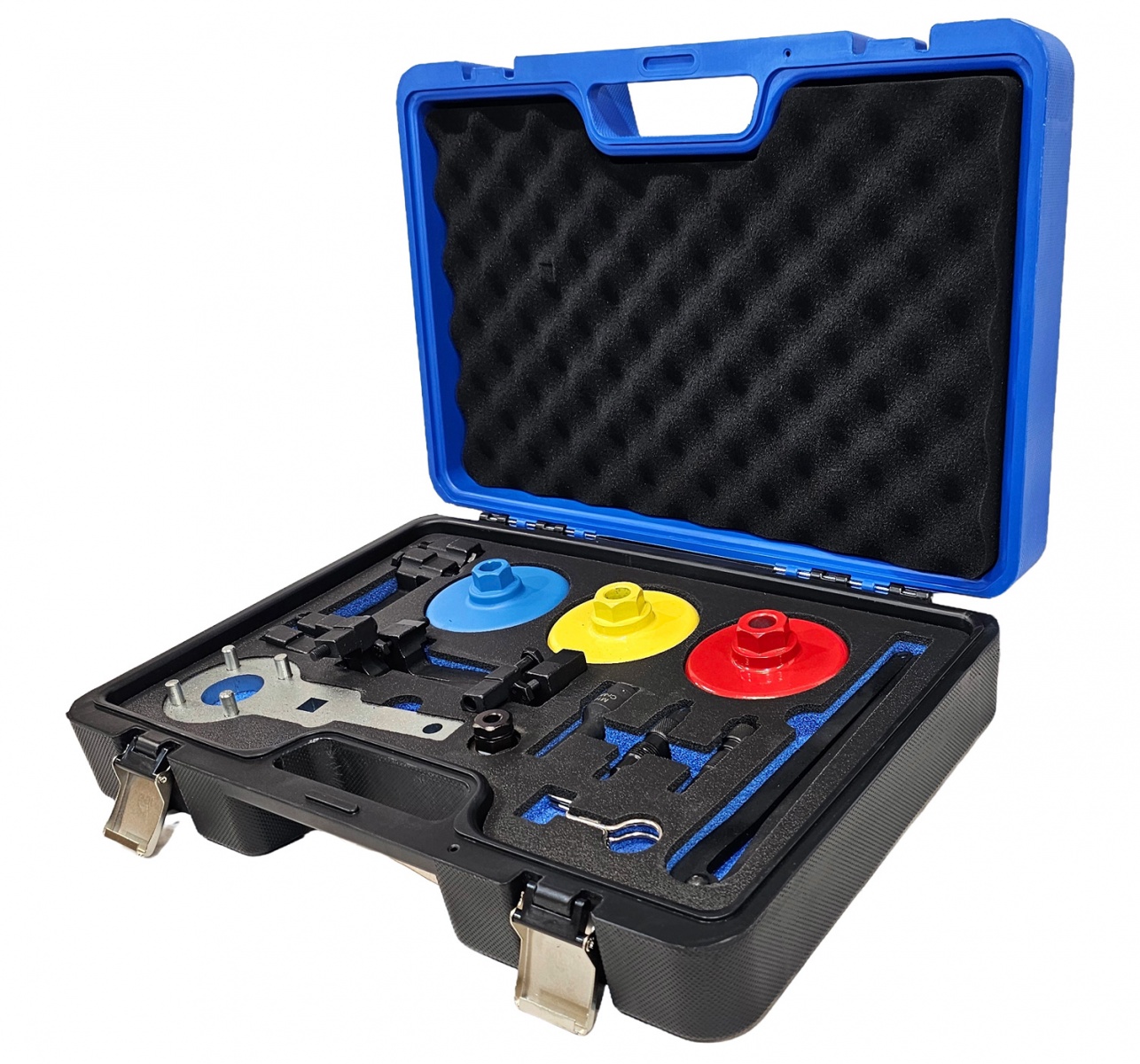 .The kit is equipped with camshaft adjuster socket key for adjusting and tension the camshaft, T40079 compatible with VAG 4.2 FSI; T40269 compatible with VAG 4.0 TFSI and T40297 compatible with VAG 3.0; Equipped with a camshaft sprocket holder wrench, replaces for VAG 3036 T10172, designed to hold camshaft or sprocket.