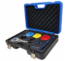 The engine timing chain tool is specifically designed for the Volkswagen Audi A6 A7 A8 2.4 2.5 3.0T 4.2 4.0L TFSI engine. Contains a camshaft locking tool set for engine timing positioning and adjustment.