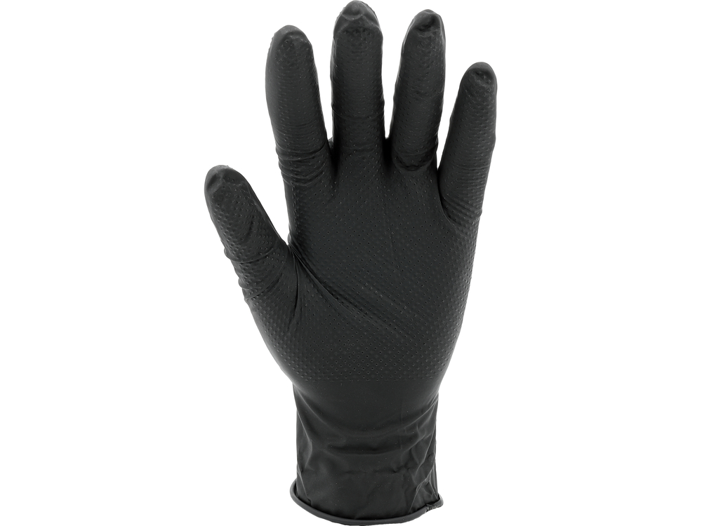 Nitrile gloves with a diamond texture designed for tasks requiring high mechanical and chemical resistance. Made of high-quality nitrile, they provide effective hand protection while maintaining good tactile sensitivity and precision of movements. The flexible material fits well to the hand, ensuring comfort during extended use.