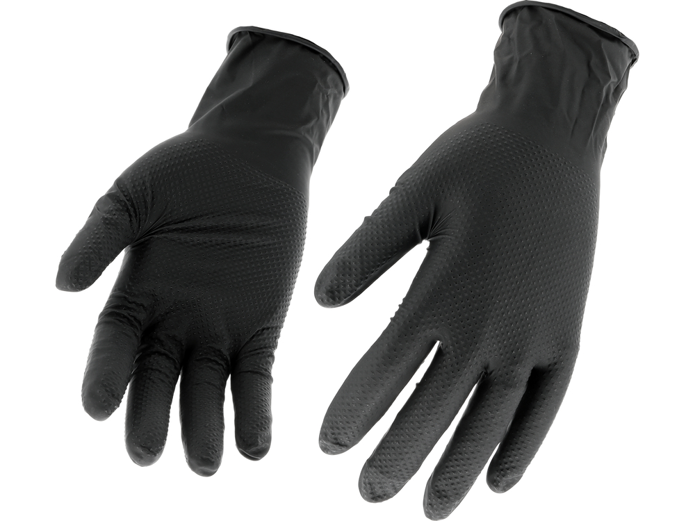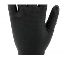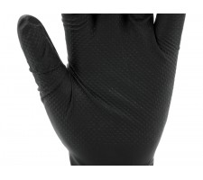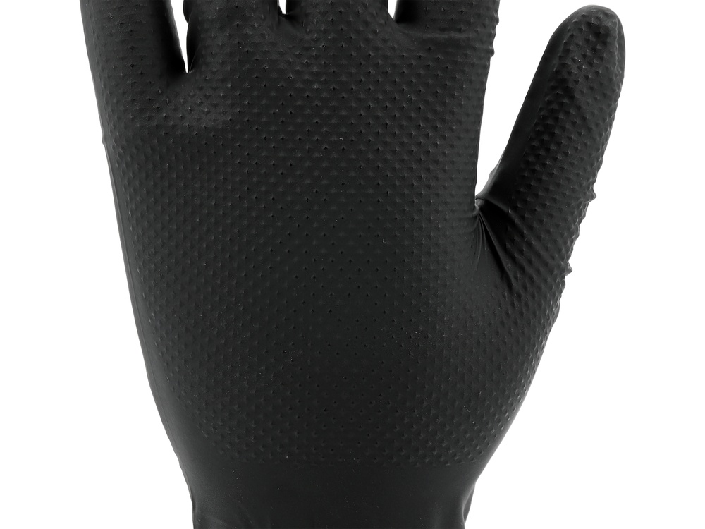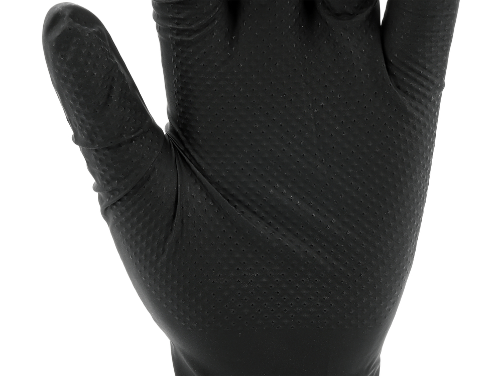 Nitrile gloves with a diamond texture designed for tasks requiring high mechanical and chemical resistance. Made of high-quality nitrile, they provide effective hand protection while maintaining good tactile sensitivity and precision of movements. The flexible material fits well to the hand, ensuring comfort during extended use.