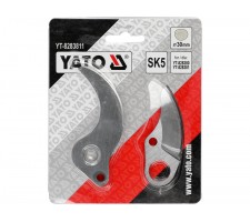 The YATO YT-8283811 blade is a set of replacement knives (upper and lower) designed for YATO cordless pruners with a cutting diameter of 30 mm. Made from high-quality tool steel SK5, they feature high hardness, wear resistance, and durability, ensuring a long lifespan and clean, precise cuts.